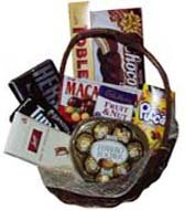 Chocolate Basket-12Contains: Ferrero Rocher T8 Heart Shaped Chocolate, Swiss Delice Fine Milk ,Cadbury Fruit & Nut,Toblerone Milk Chocolate, Meiji Macadamia, Hershey's Milk Choco with Almonds, Timtam chocolate, Meiji Pucca, Chocopie. |