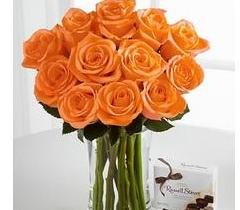 Orange Rose Bouquet with 200 g ritter sports12 Stems - Autumn Brilliance Orange Rose Bouquet with 200 g ritter sports Chocolates - |