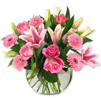 InspirationThe greatest artists in history always had something that inspired their work. With this amazing mix of fresh lilies and roses with green fillers in a glass vase, you just found your muse.The greatest artists in history always had something that inspired their work. With this amazing mix of fresh lilies and roses with green fillers in a glass vase, you just found your muse. |