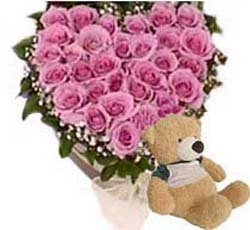 Lonely Without You...Let your sweetheart/ spouse know how much you miss being together. (heart shape 4 dozen pink roses and 8 " teddy bear). |